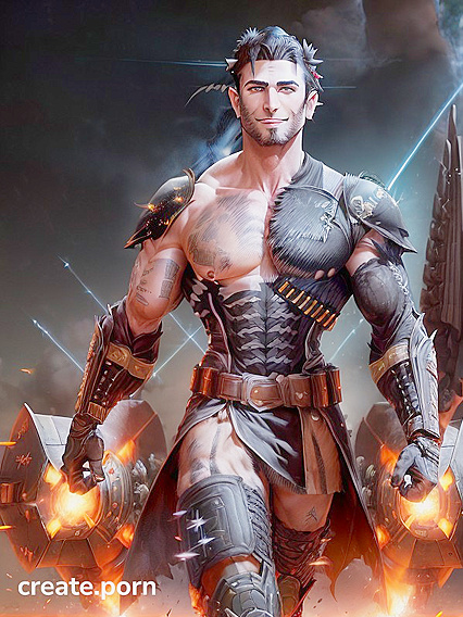 Muscular Man With a Big Smile and Ammo Straps in Intense Hentai Action