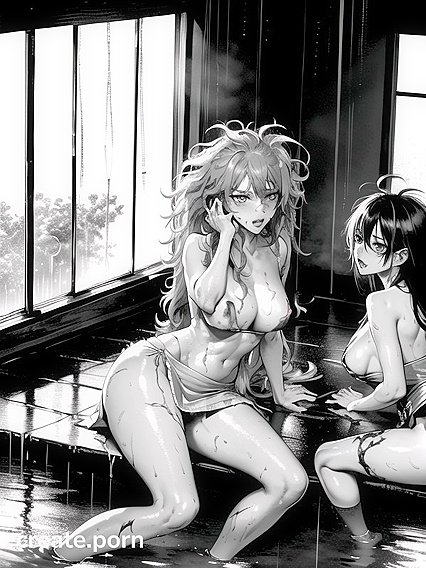 Black & White Manga, Pale Skin, Bottom Up (Upskirt), Touching Face, Ahegao, Red Eyes, Long length, Multi Colored Hair, Fit, Medium Breast, Medium Ass, Apron, Shower, Harem, Night, Snowing, Messy Hair, | Made With NSFW AI Porn Generator