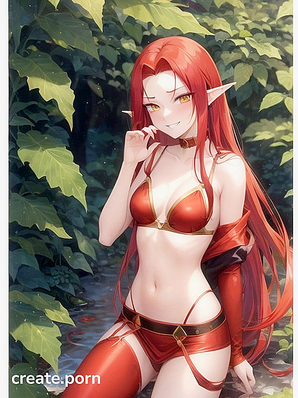 Red-EaredElf with Yellow Eyes and Snake Tail Seduces in Horny Hentai AI Image