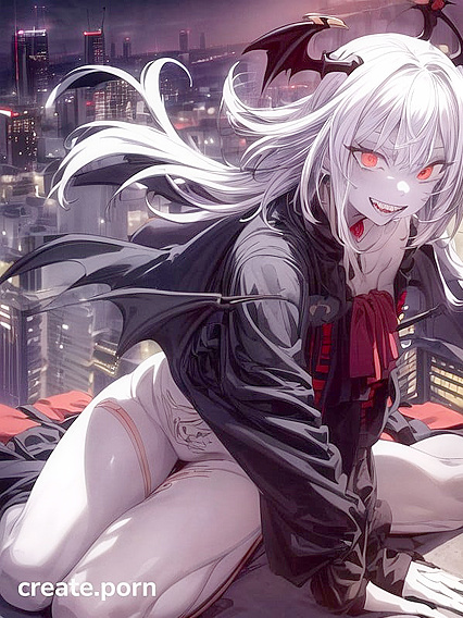 Vampire With Mixed White and Black Hair Seduces in Modern City Hentai