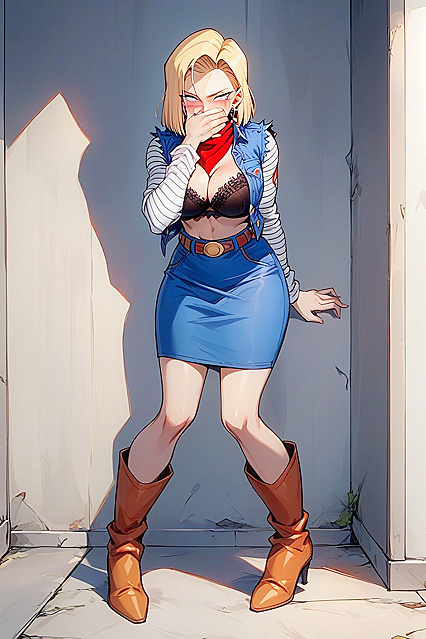 Катать глаза, Уставшее лицо, Android Dragon ball Z, chloroformed, stranger's hand covers mouth with a handkerchief , stranger's hand fondle breast , blushing, skirt, cleavage, tight top, high boots, body goes limp in stranger's arms, grabbed from behind , tears, heavy eyelids, full body, lacy bra, grabbing stranger's arms | NSFW с искусственным интеллектом.