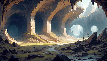 , scenery view of sealed cave with many warriors skeletons laying scattered and | NSFW с искусственным интеллектом.