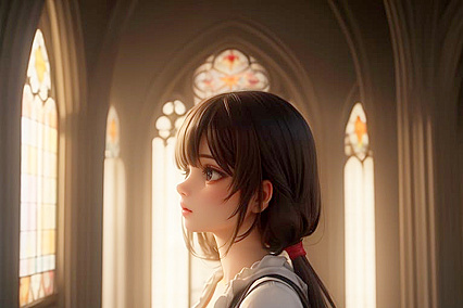 Худое, Маленькая грудь, Маленькая задница, Снимок до груди, Боковой вид, Церковь, Кинематографический, 3D, The Virgin Mary Inmaculate Bible The Virgin Marybible, Cross Pendant, Teeth Braces | NSFW с искусственным интеллектом.