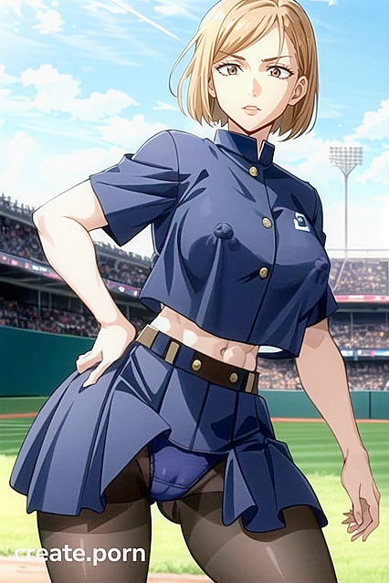 Screencap, Kugisaki Nobara (Jujutsu Kaisen), Muscular, Large Breast, Baseball Uniform, no stockings, perky nipples, cameltoe | Made With NSFW AI Porn Generator