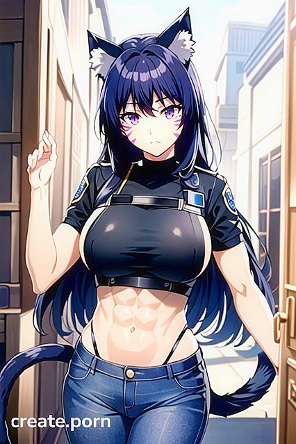 Delta (Eminence in Shadow), Muscular, Large Breast, Jean shorts, Police costume, Cat Ears, | Made With NSFW AI Porn Generator