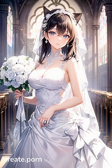 Looking at Viewer, 18, Large Breast, Wedding Dress, Cat Ears, Wedding, | Made With NSFW AI Porn Generator
