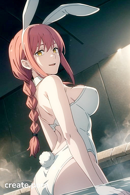 Makima (Chainsaw Man), Bottom Up, Arms Behind Back, Happy, Bunny Costume, Hot tub, black bunny suit, red hair, big butt | Made With NSFW AI Porn Generator
