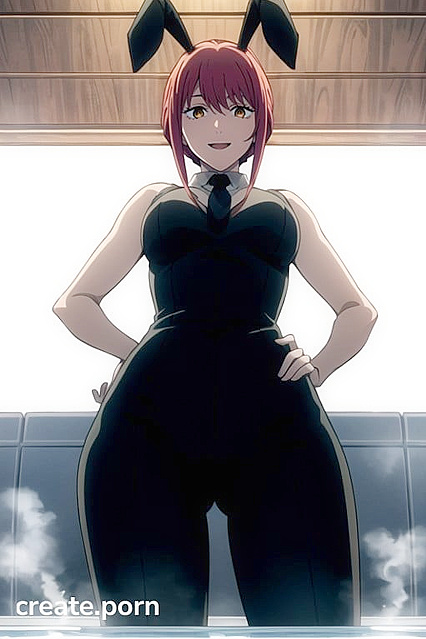 Makima (Chainsaw Man), Bottom Up (NSFW), Hands on Hips, Happy, Bunny Costume, Hot tub, black bunny suit, red hair, big butt | Made With NSFW AI Porn Generator