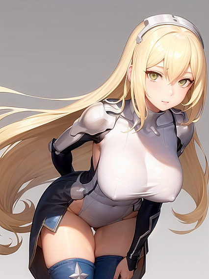Aiz Wallenstein (Is It Wrong to Try to Pick Up Girls in a Dungeon?), Looking at Viewer, Happy, Green Eyes, Long length, Blonde Hair, Thick, Large Breast, Large Ass, | Made With NSFW AI Porn Generator