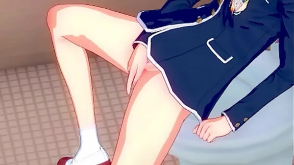 Seductive Blue-Haired Anime Babe Invites You for Steamy Toilet Stall Sex Adventure