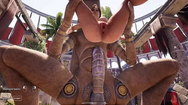 An ancient statue awakened and began to fuck Lara in an arena with 1,000 spectator...
