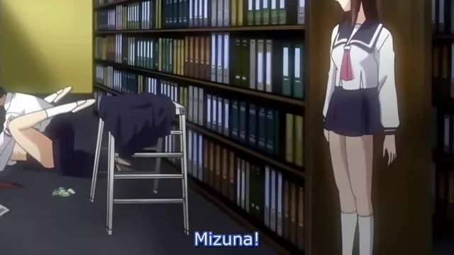 Dirty hentai schoolgirl fucks her sensei in the library while teen watches